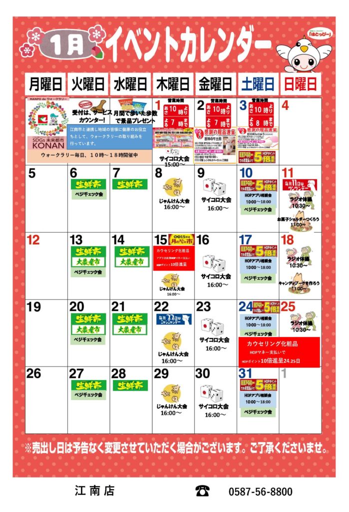 \平和堂江南店1月のイベントカレンダー♪/