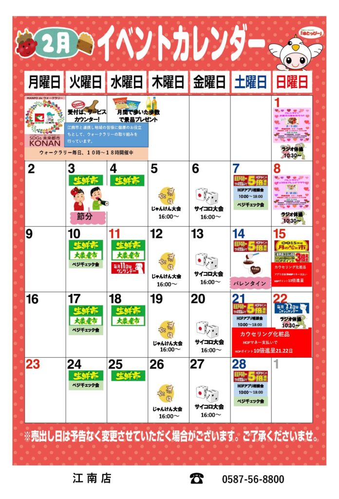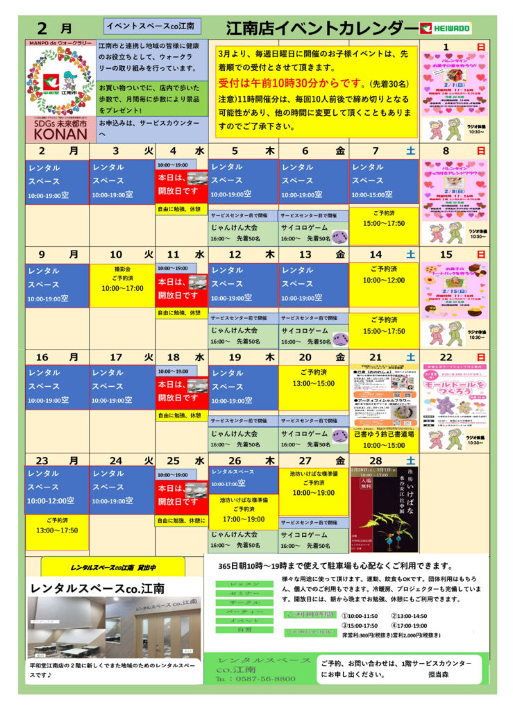 \平和堂江南店2月のイベントカレンダー♪/